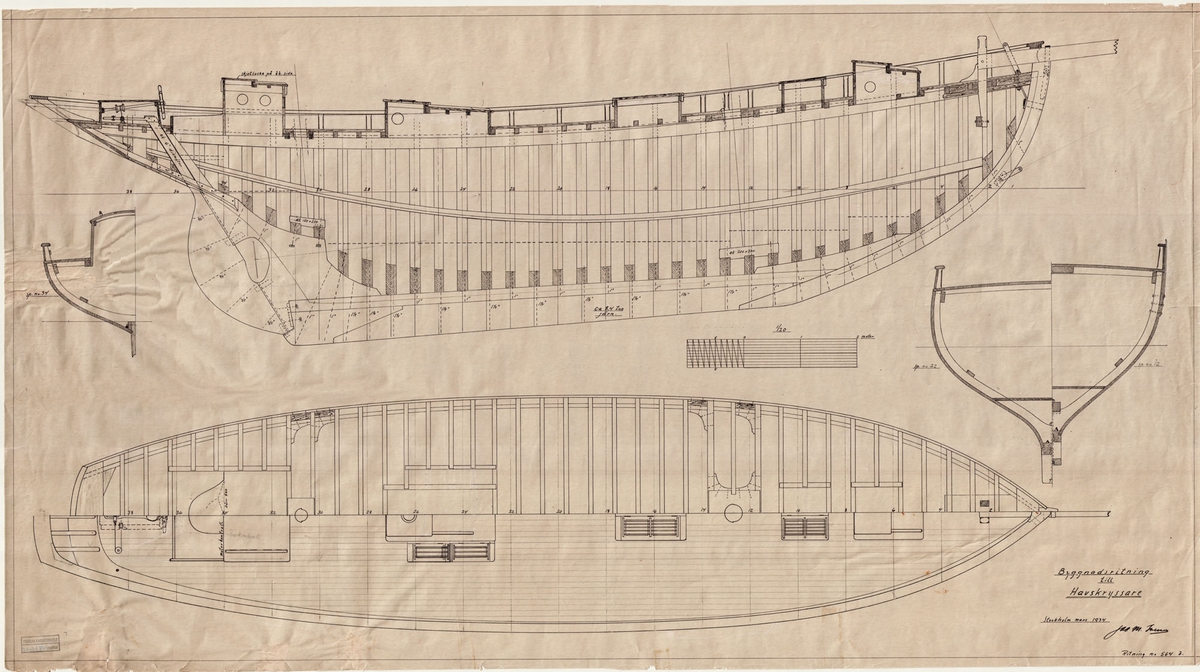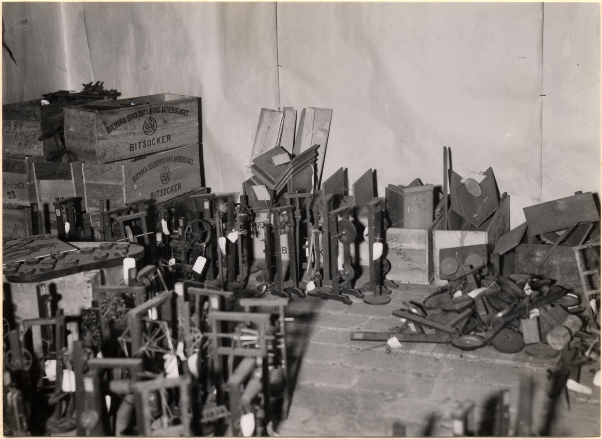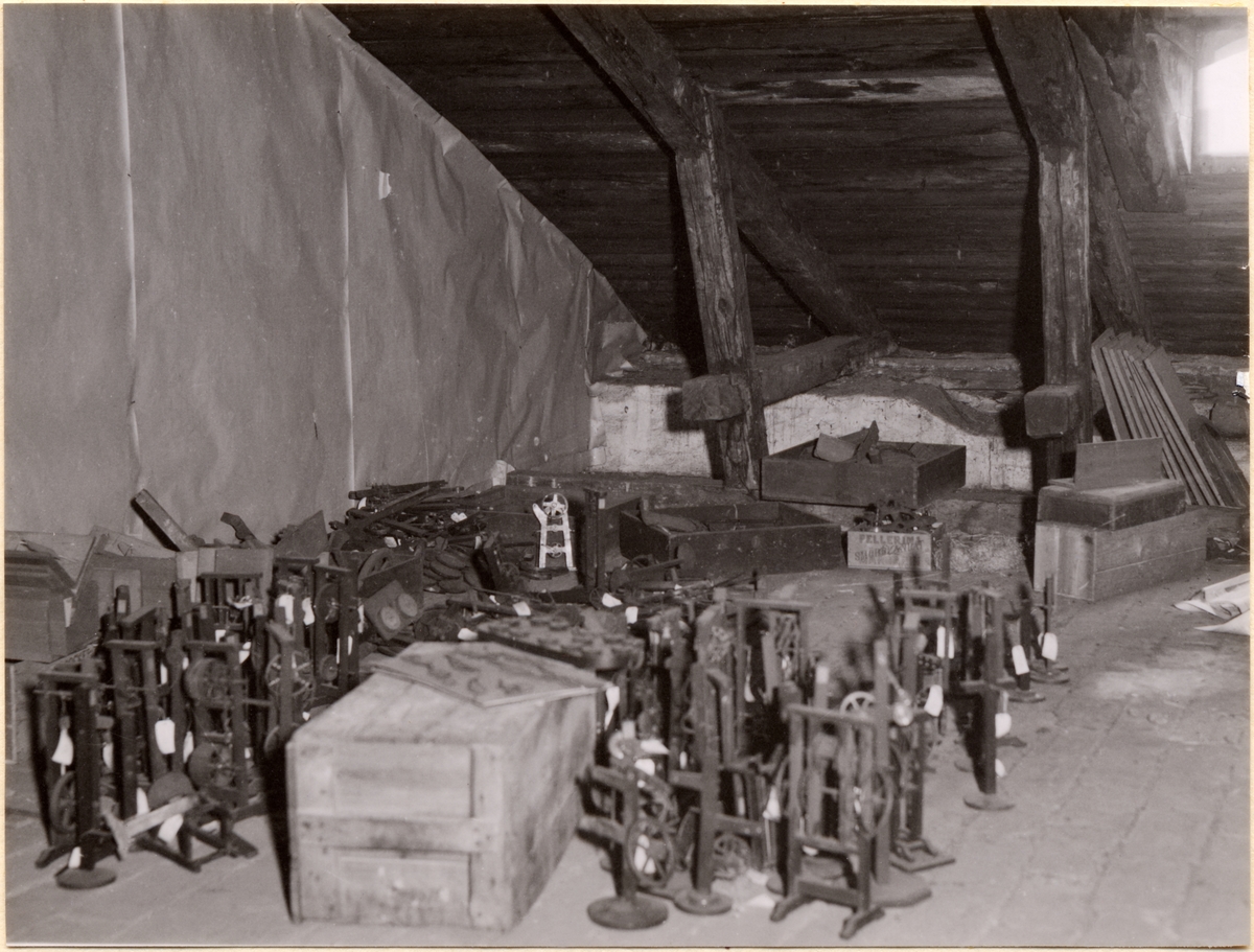 En del av Tekniska Högskolans modellsamling på vinden till högskolans byggnad vid Drottninggatan.