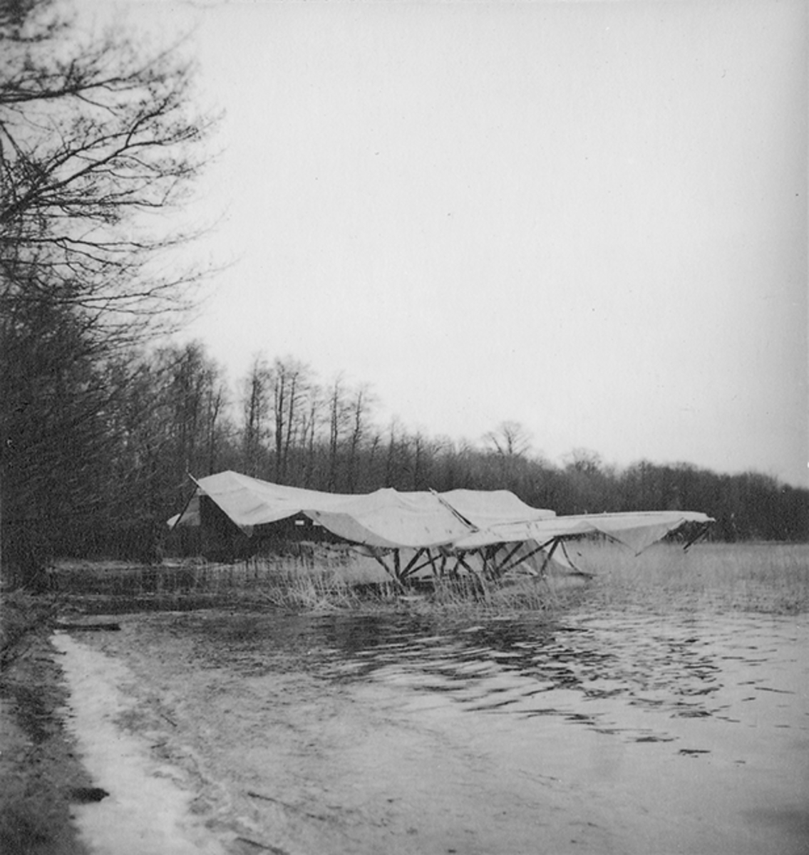 Kamouflerat sjöflygplan vid strandkant under övning, 'Skånemanövern' 1939.