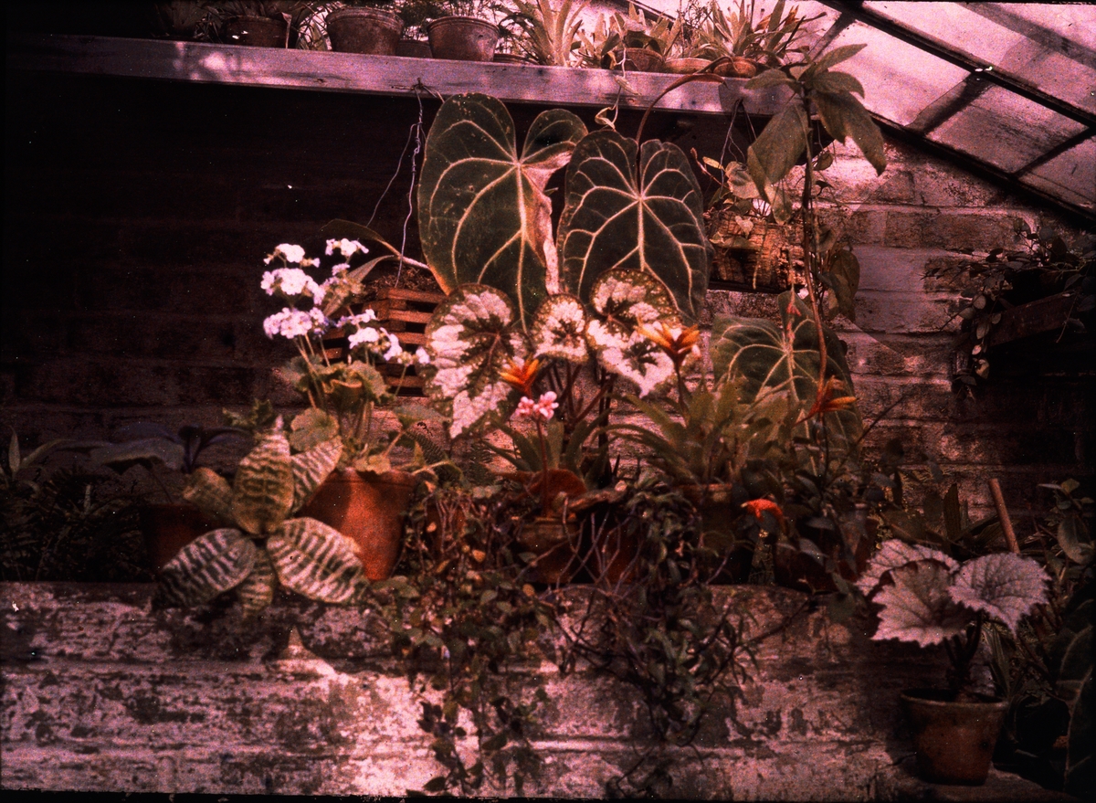 Lumières-autokrom. Växthuset Dr Römpler. Görbersdorf Schlesien. Fotograferad i april 1910 med f/12, 50 sek. exponering.