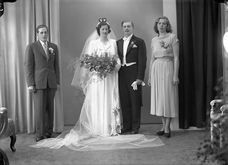 Enligt fotografens journal nr 8 19511957: "Johansson, Bruden. Herr Allan, Apleröd Ödsmål".