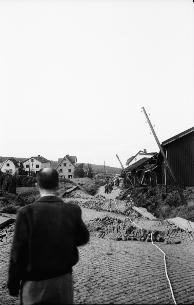 Över 30 hus drogs med i det 400 meter breda och 600 meter långa skredet av kvicklera ner mot Göta älv. Rasmassorna kom att blocker
