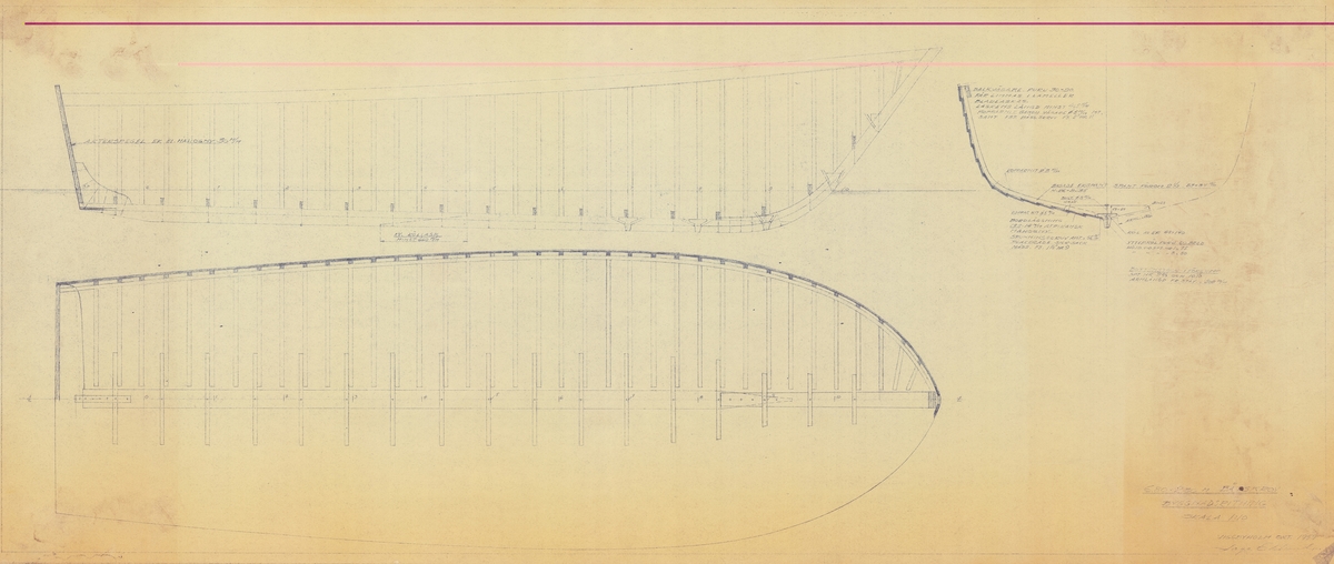 Wargöns AB. Byggnation av PM 5 1959-60. Foto och påförd text av dåvarande ritkontorschefen Ragnar Söderberg.