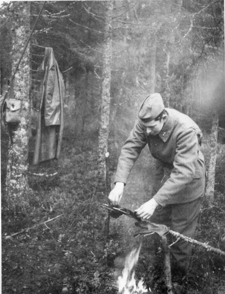 Torkning av handskarna under regementsmästerskapen i orientering vid Hindås. Göta artilleriregemente A2.
