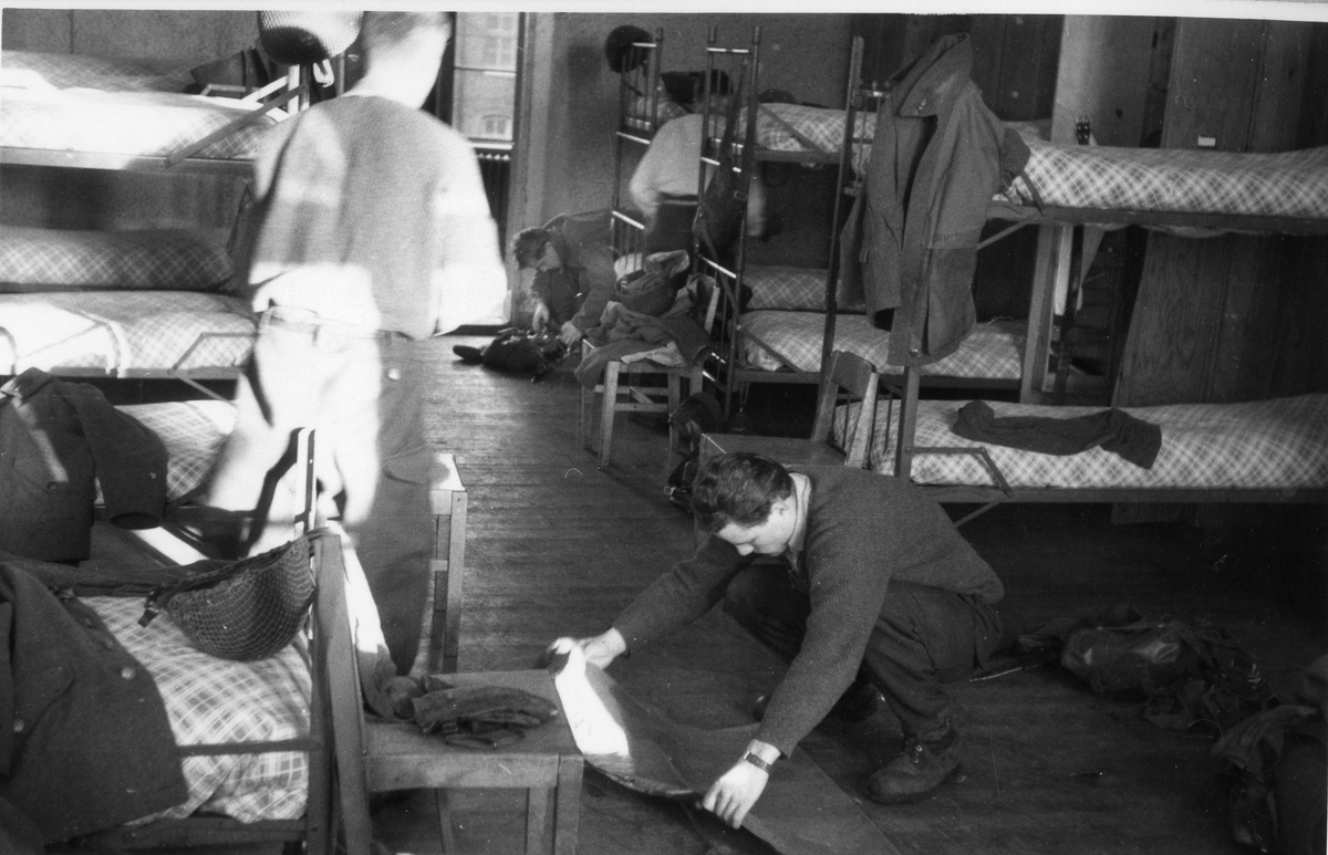 Värnpliktige ligger i sängen på 7 logementet 5 batteriet, Göta artilleriregemente A2.