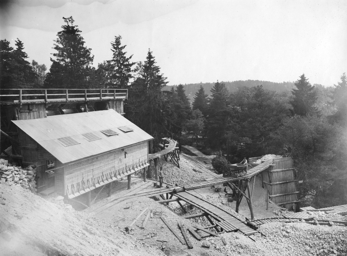 Wargöns AB. Byggnation av PM 5 1959-60. Foto och påförd text av dåvarande ritkontorschefen Ragnar Söderberg.