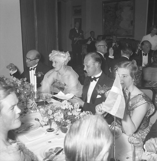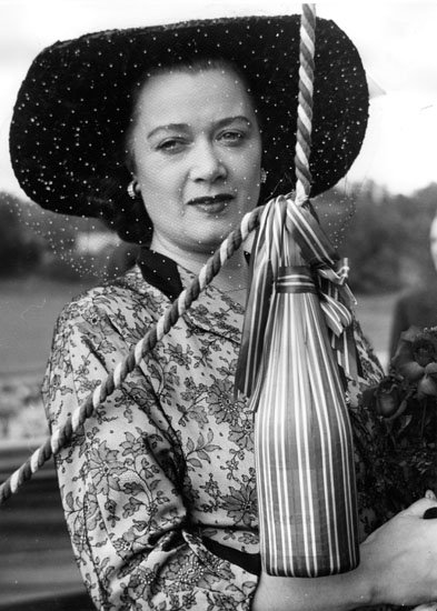 Vid dop och sjösättning av fartyg 124 M/T Astrid Elisabeth. Kvinnan med blombuketten är fartygets gudmor.