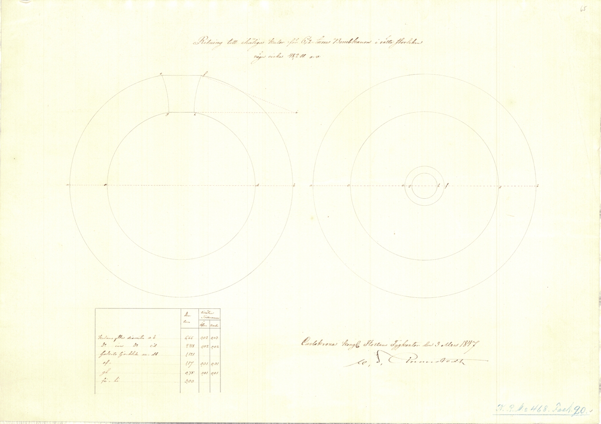 'Industry' (fl. 1765). No scale. A plan showing the sections at frame twelve and at the midships for the 'Industry' (fl. 1765), a 6-gun brig to lie in the Bar of Senegal, as a floating battery.