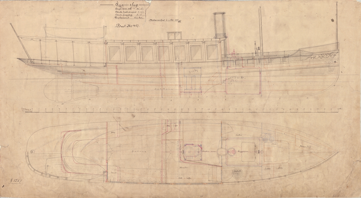 Unnamed Trinity Steam Yacht (circa 1843). Scale: 1:12. Plan showing the plan, elevation, and section for the steering apparatus as fitted to HM TRinity Steam Yacht, 276 tons (old rule). The plan is as taken off in October 1843.