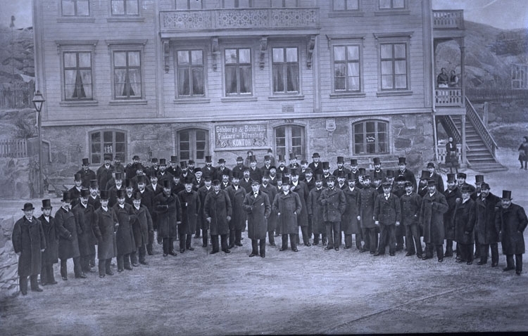 Enligt text som medföljde bilden: "Bundsens uppvaktning. Den 4 Februari 1883 Uppvaktande Lysekils medborgare. Tullinspektören E.G Bundsen, för att bringa honom sin hyllning och tack för det han under en tid av 25 år, på