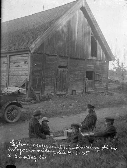 Enligt text på fotot: "Efter nedstigandet från Halleberg då vi intogo vår middag den 4925. x En väldig lås".