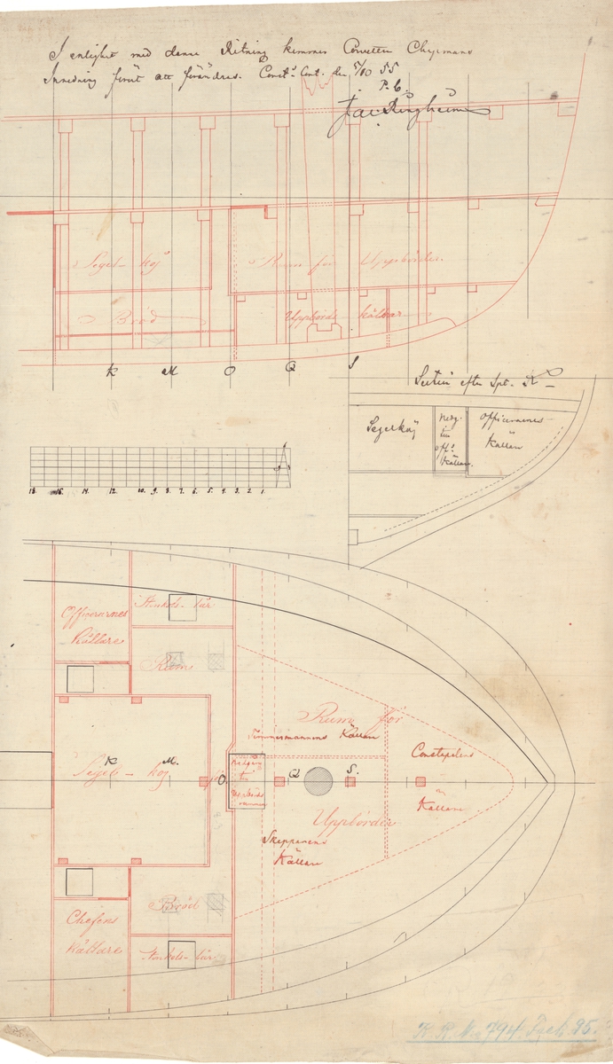The bow of a barge, details of the heel of the sprit and other rigging details. original art: drawing