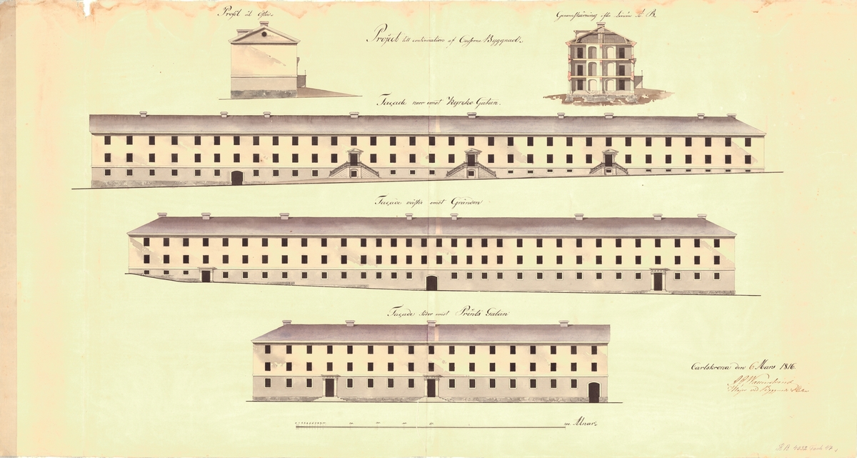 Foto från byggnationen av Dramatens jugendinspirerade nybyggnad (1901-1908) vid Nybroplan i Stockholm.