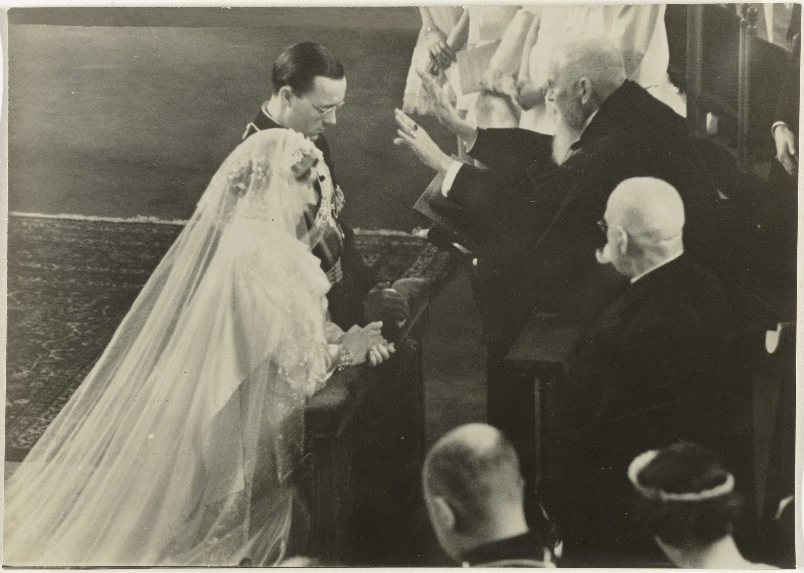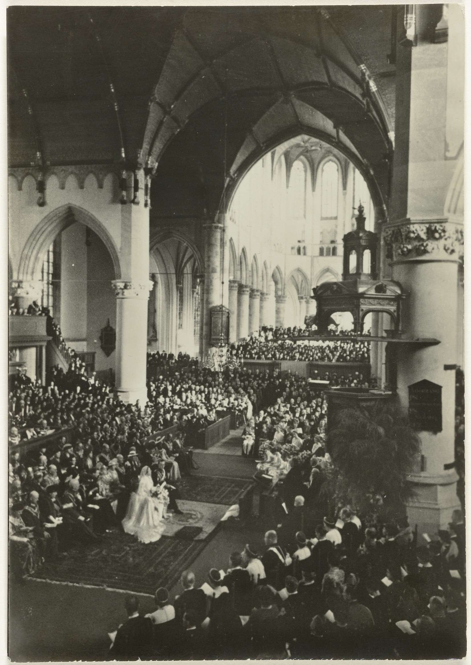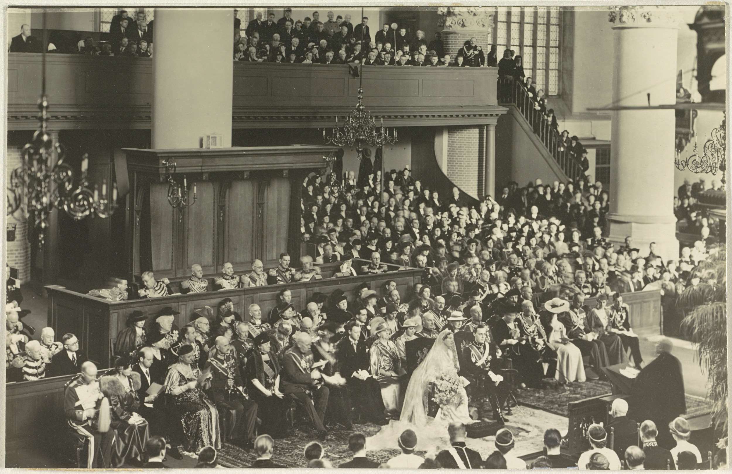 Huwelijk van Juliana, koningin der Nederlanden, en Bernhard van Lippe-Biesterfeld in de Grote Kerk te Den Haag op 7 januari 1937