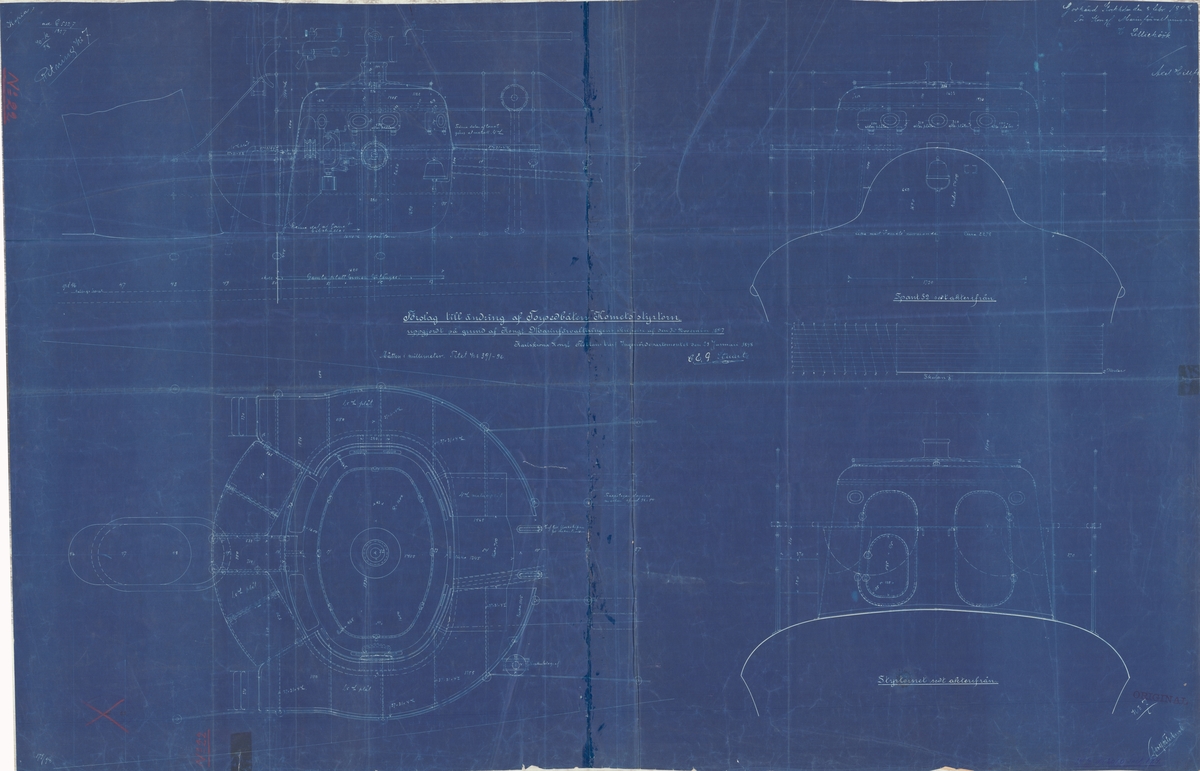 Proposed (and approved) alterations are drafted in red ink, illustrating a plan to use the 'Warrior' as a depot/store sh