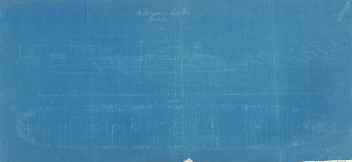 Challenger (1858). Scale: 1:48. Plan showing the upper deck illustrating the details and deck layout for Challenger (1858), a 20-gun corvette, as fitted for the scientific circumnavigation between 1872-1876. The plan was examined by J B Huddy.
