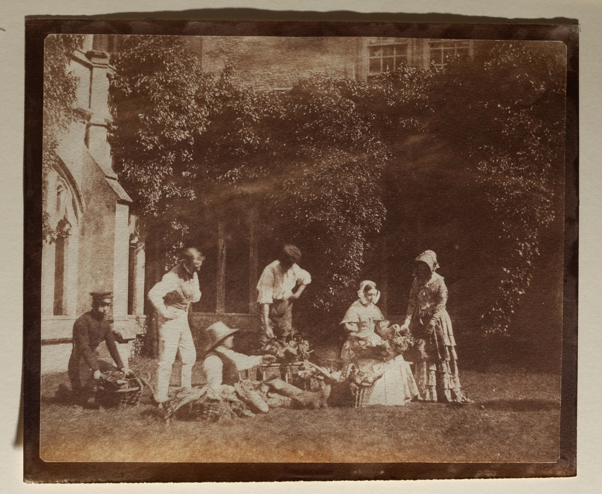 "Fruksförsäljare". Originalkalotyp från Lacock Abbey, Wittshire, troligen den 9 september 1845. Fotografiet är taget antingen av Talbot, ell