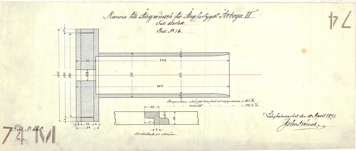 Wanderer (1835); Wolverine (1835); Sapho (1837); Harlequin (1836); Lily (1837). Scale: 1:24. Plan showing an elevation for the rudder heand and tiller for 16-gun Brigs, specifically Wanderer (1835); Wolverine (1835); Sapho (1837); Harlequin (1836); Lily