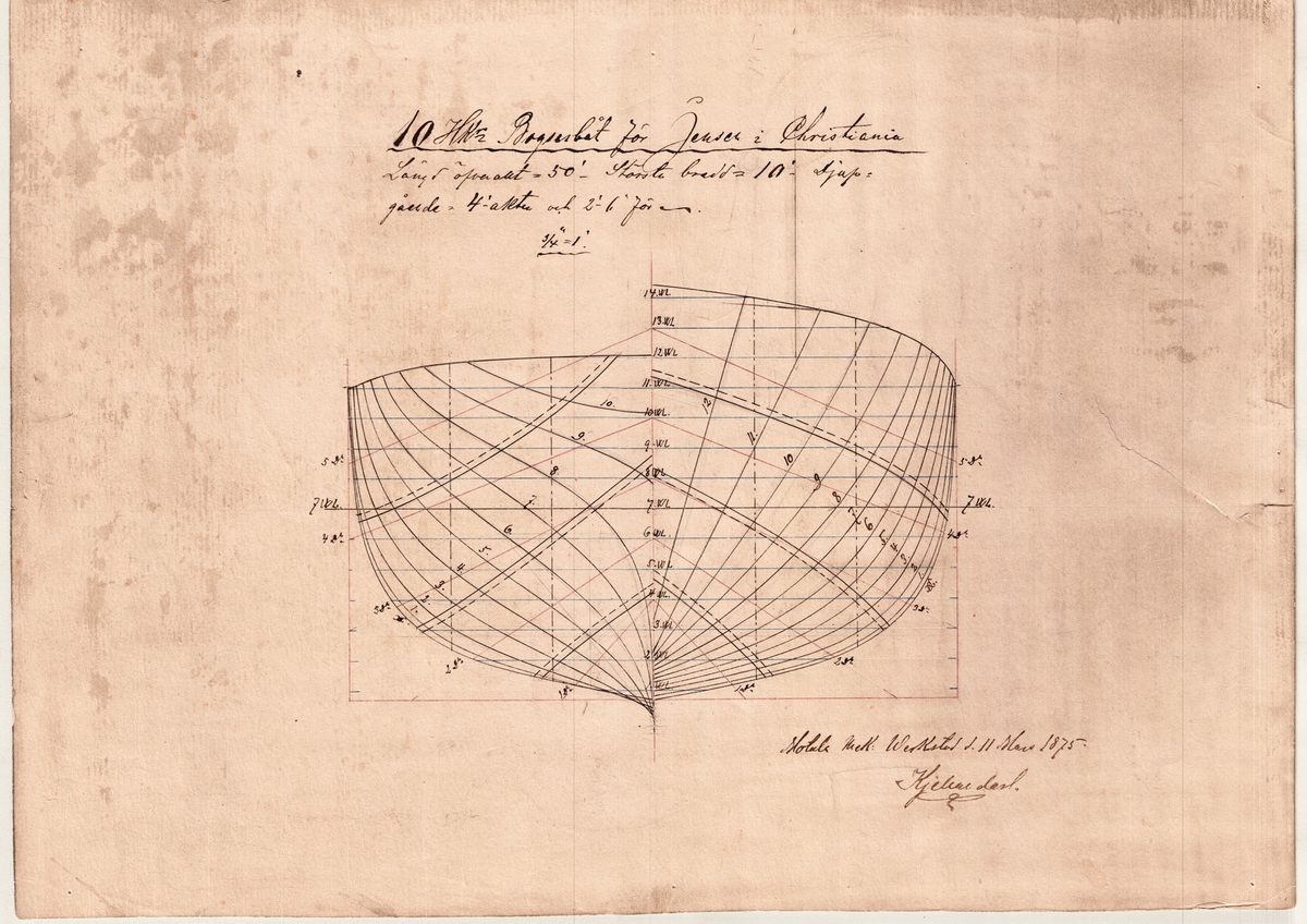 27ft Steam Life Boat Cutter No.4. Scale: 1:24. Plan showing the body plan, sheer lines, longitudinal half-breadth for a 27ft Steam Life Boat Cutter No.4.