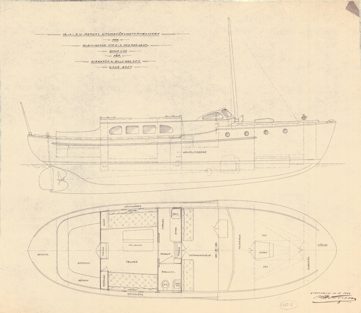 Enligt text som medföljde bilden: "Lysekil. Dykaren i pråmen vid Badhuset 11/10 1900 Hugo Hallgren."