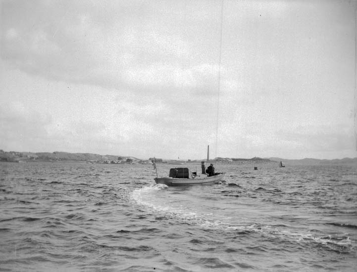 Enligt text som medföljde bilden: "Lysekil, Pansarbåten Odens ångslup tagen fr. Lyckans brygga. Hugo Hallgren 12/9 1899".