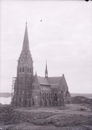 Enligt text som medföljde bilden: "Lysekil, Nya kyrkan fr. Flaggberget 12/9 1901."