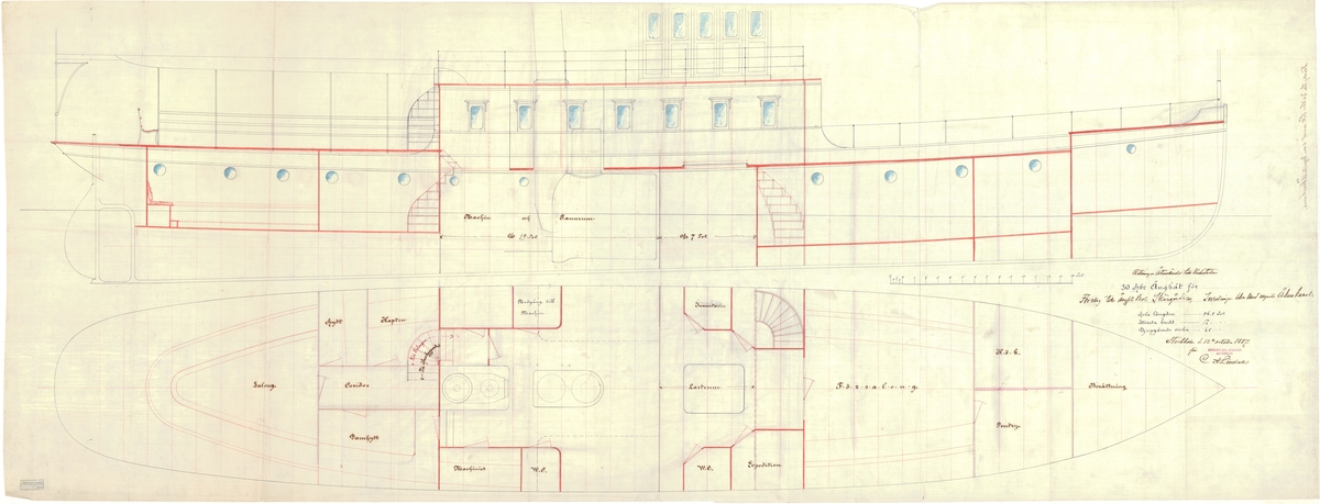 Hindostan (1841). Scale: 1:48. Plan showing the body plan, sheer lines, and longitudinal half-breadth for Hindostan (1841), an 80-gun Second Rate, two-decker, to be built at Plymouth Dockyard.