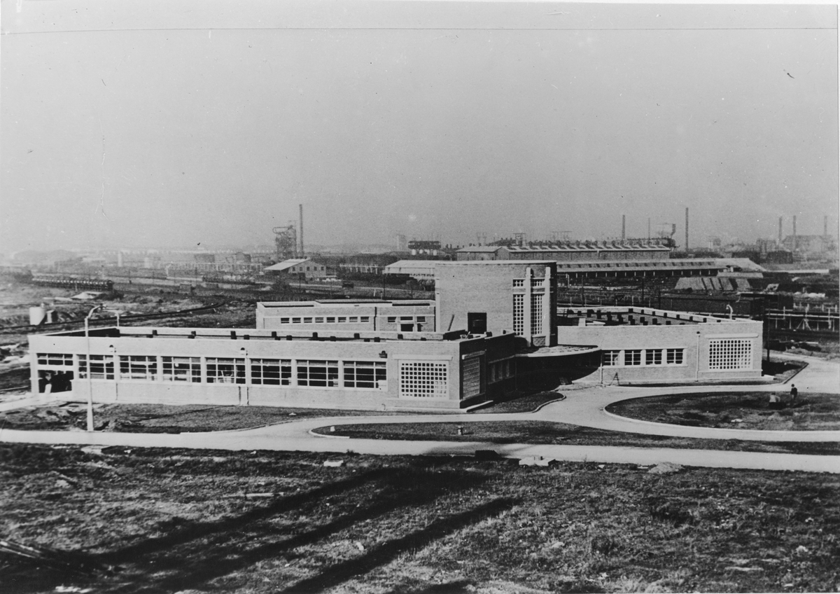 Shells oljeraffinaderi vid Stanlow 14- juli 1949. Kontorsbyggnaden vid Shell Chemical Plant.