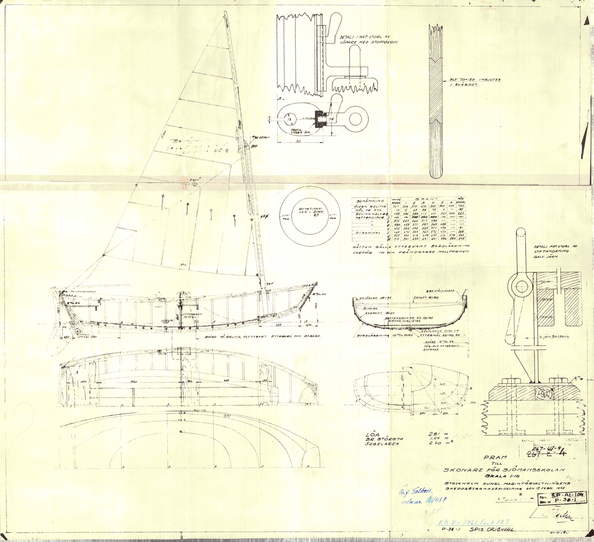 Sturdy (1943); Stygian (1943). Scale: 1:48. Plan showing the port inboard profile from the starboard side, a plan of the bridge, the superstructure plan, a plan at the greatest breadth, a plan of the flat at frames 98-107, a plan below the main flats at