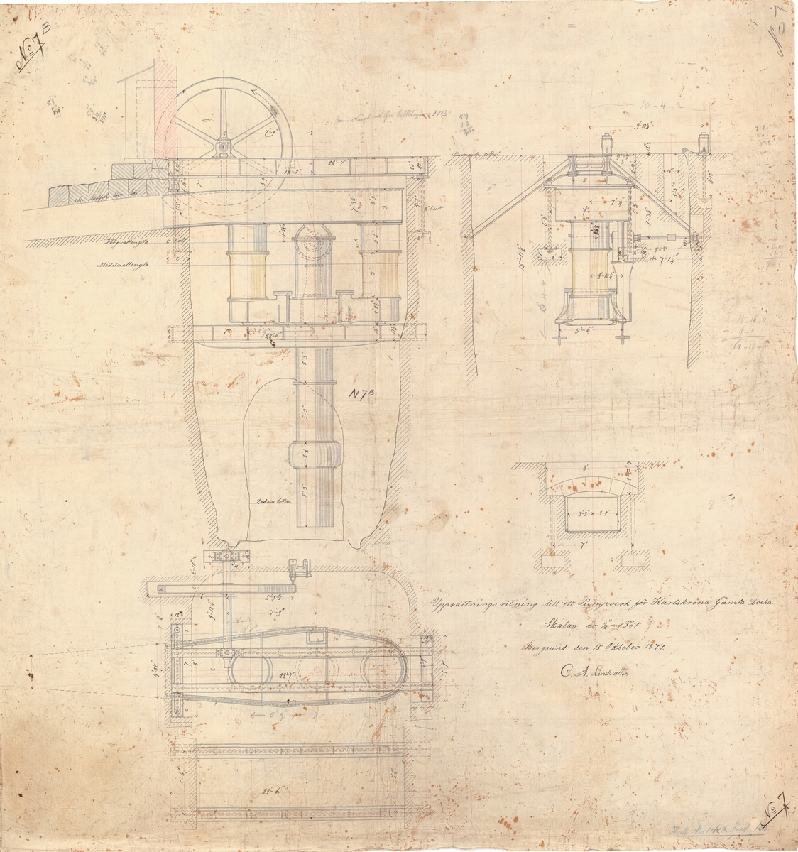 30 ft Pinnace. Scale: 1:24. Plan showing a sail elevation with some inboard detail for a 12 oared, 30 ft Pinnace, with a De Horsey Rig. Included is a plan of the mast step and thwart. Signed E. C. Warren [Chief Constructor, Chatham Dockyard], and H. S.