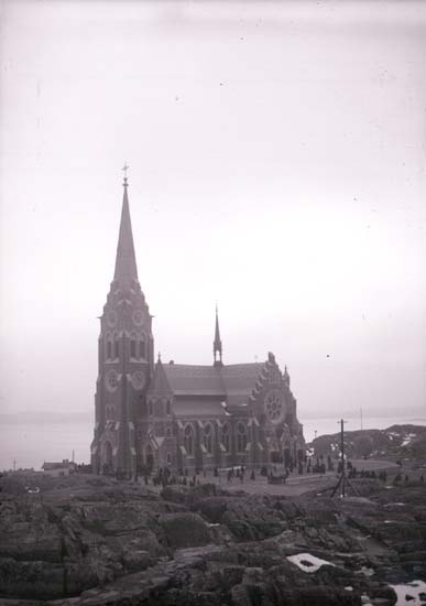Enligt text som medföljde bilden: "Lysekil Nya kyrkan från Flaggberget 16/3 1902."