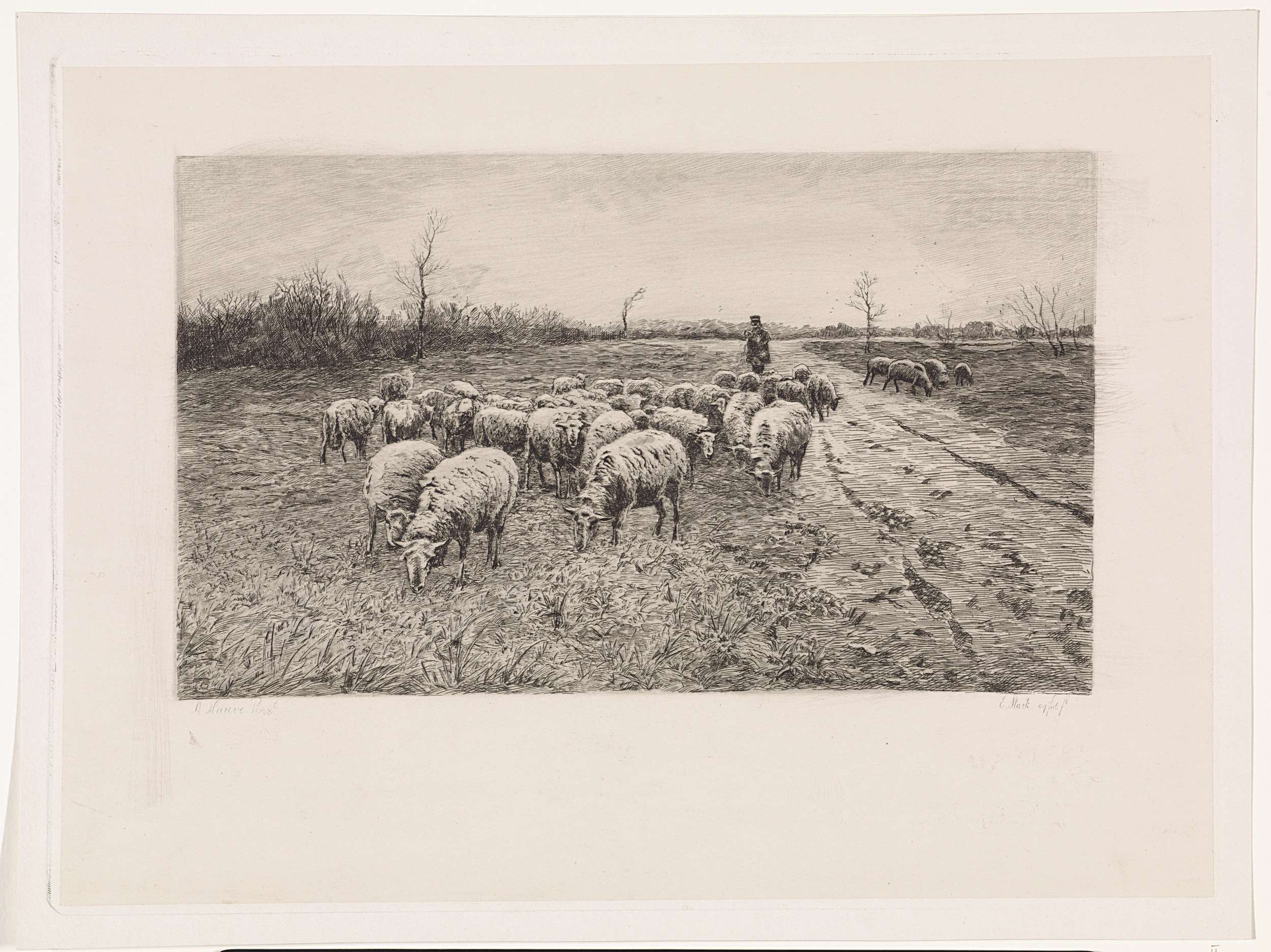Sketch of Greenwich Pier. A pencil study made from the centre of the Greenwich Pier pontoon, looking west (upstream). The western flight of waterstairs are on the right with an advertisement board (annotated as 'Advt Board') on the railings abov