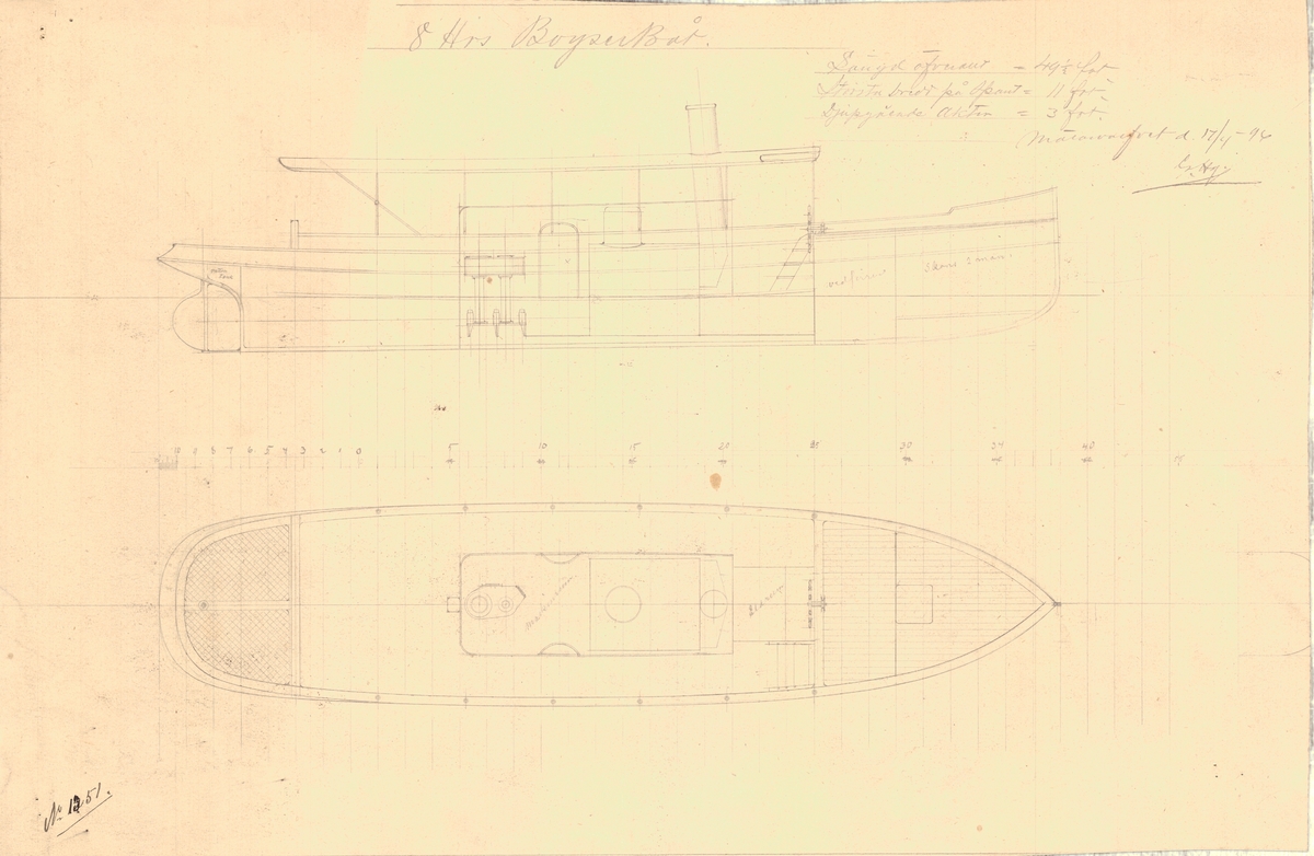 'Warrior' (1860). Scale 1:48. A plan showing the proposed positions of the furnace for molten iron, and fan to be fitted to the broadside ironclad 'Warrior' (1860).