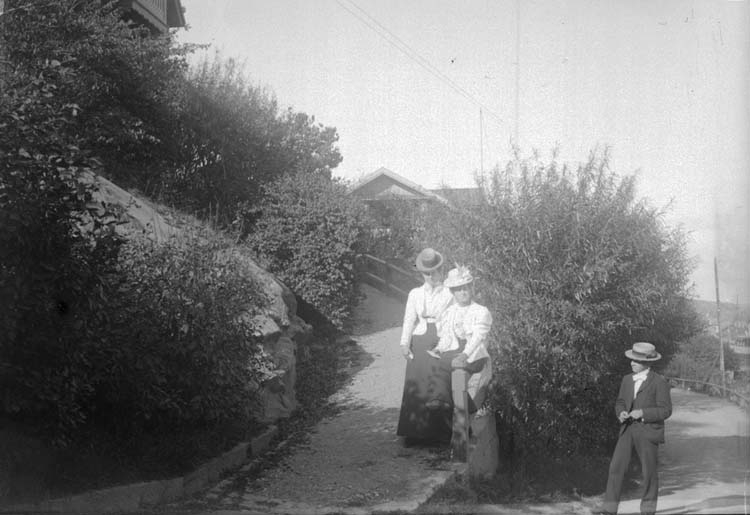 Enligt text som medföljde bilden: "Anna och Julia vid Hasselroths villa. Lysekil 17/9 1899. Hugo Hallgren"