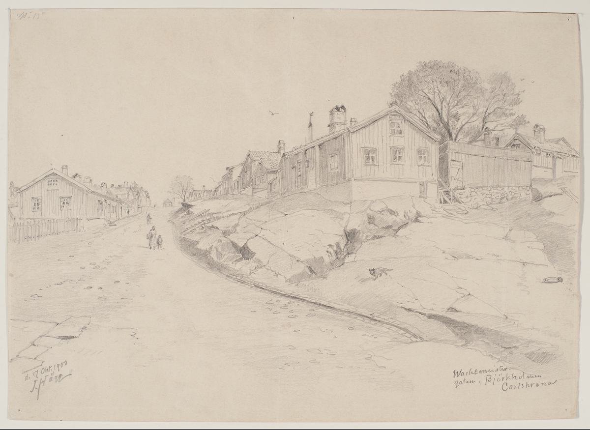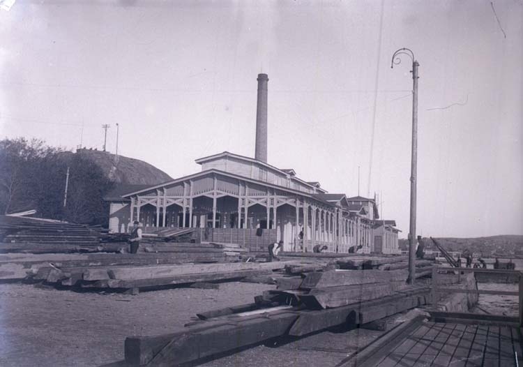 Enligt text som medföljde bilden: "Under arbetet vid Badhuset, Lysekil, 17/10 1900.