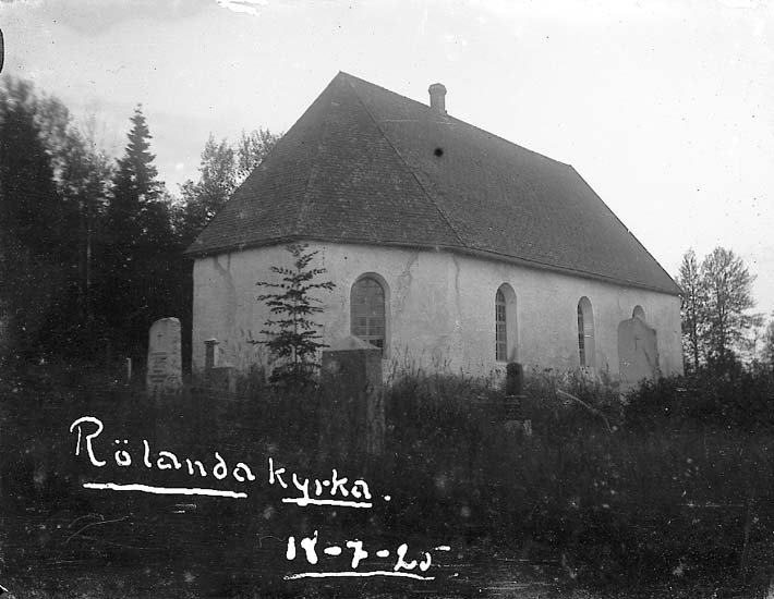 Enligt text på fotot: "Rölanda kyrka. Dalsland. Å denna kyrkogård vilar nog många av dem som under mina barndomsår vandrat på min hembygds vägar, nämligen av de s.k. vandringsfolket som här haft