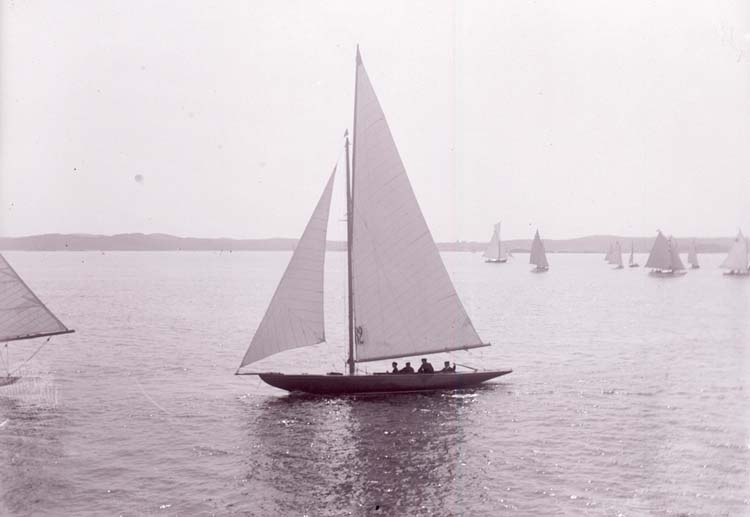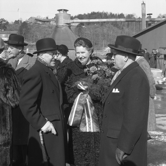 Direktörer samlade inför provtur med 127 M/T Bel Mare. Mannen i mitten är Uddevallavarvets nytillträdde VD Helge Hagelin. Han var VD mellan 19530110 och 19580328.