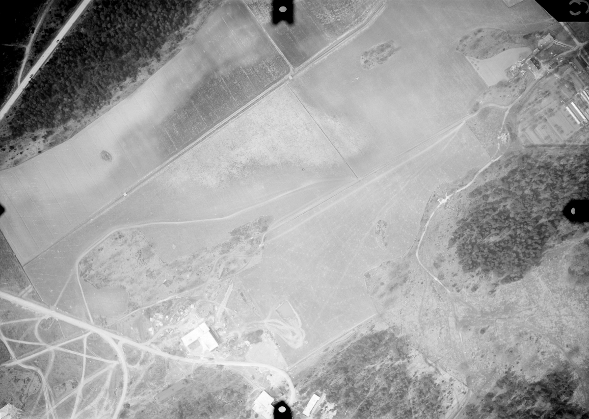 Flygbild från 1200 meters höjd av Barkarby flygstation, F 8, 1939. Detalj av byggnader.