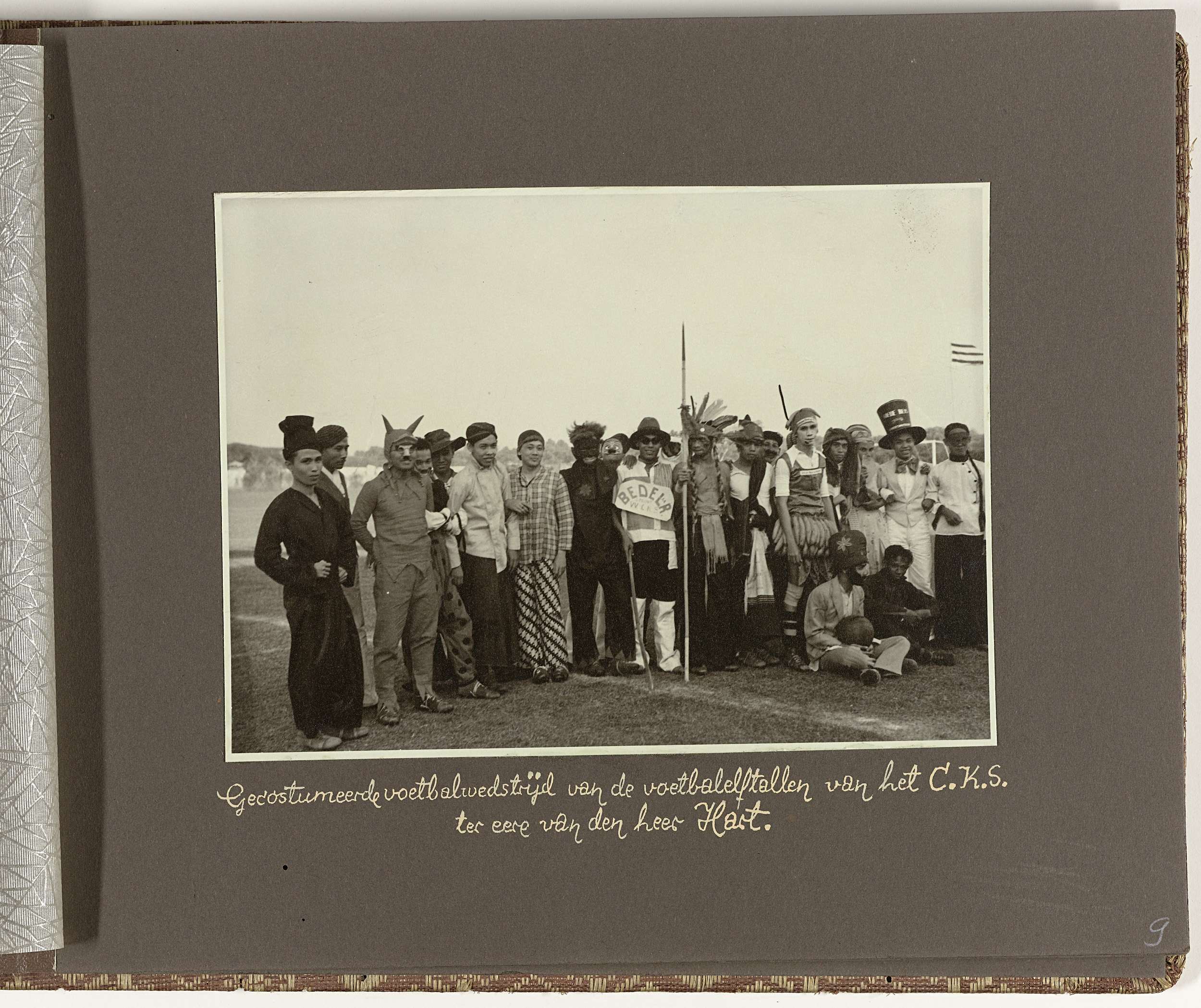 Gekostumeerd voetbalelftal van het Centraal Kantoor voor de Statistiek te Batavia