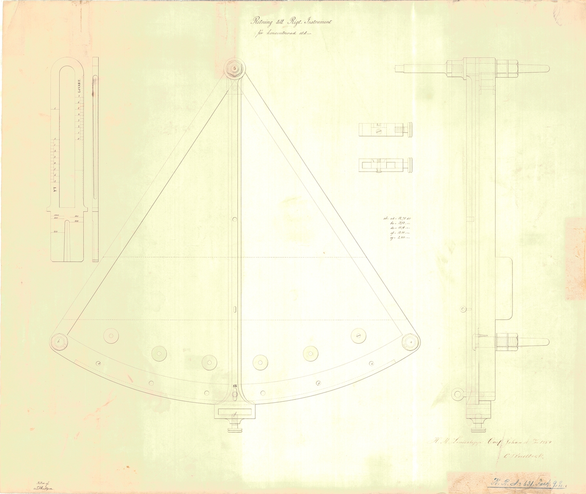 Engine and Boiler for a Dredger. Scale: 1:48. A plan showing the elevation, plan, and section for an engine and boiler proposed to be fitted to a dredger. The engine was originally in the 'Wilberforce' (1840), an iron paddle exploration ship th