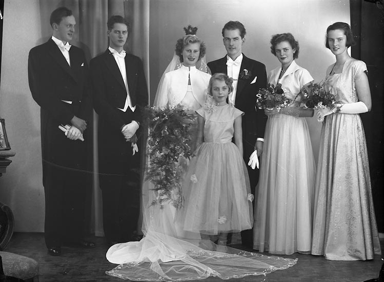Enligt fotografens journal nr 8 19511957: "Runestam, Kurt Erik Brudp. med tärnor o marskalk".