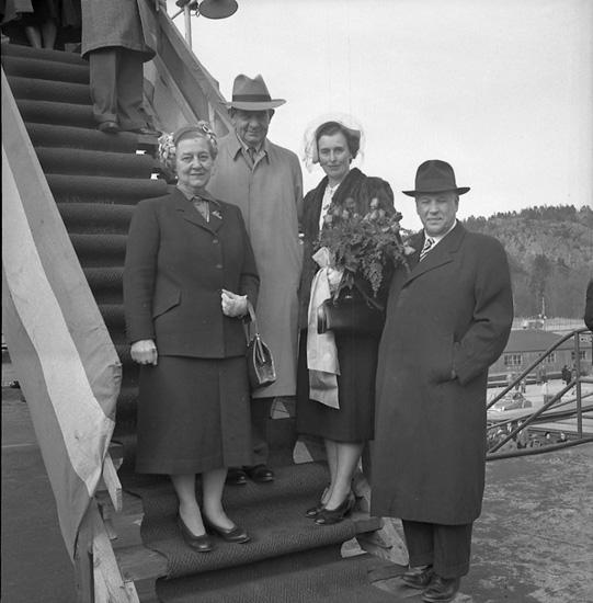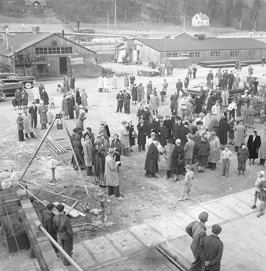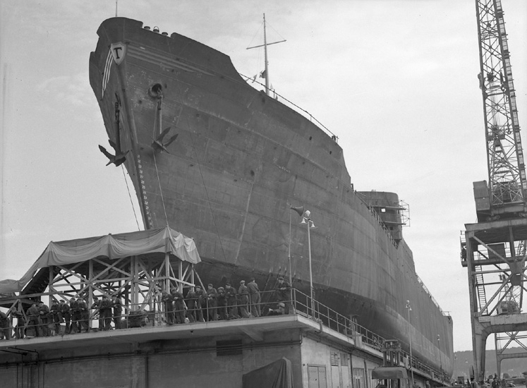 Dop och sjösättning av 122 M/T Glimmingehus. Kvinnan på bilden är fartygets gudmor.