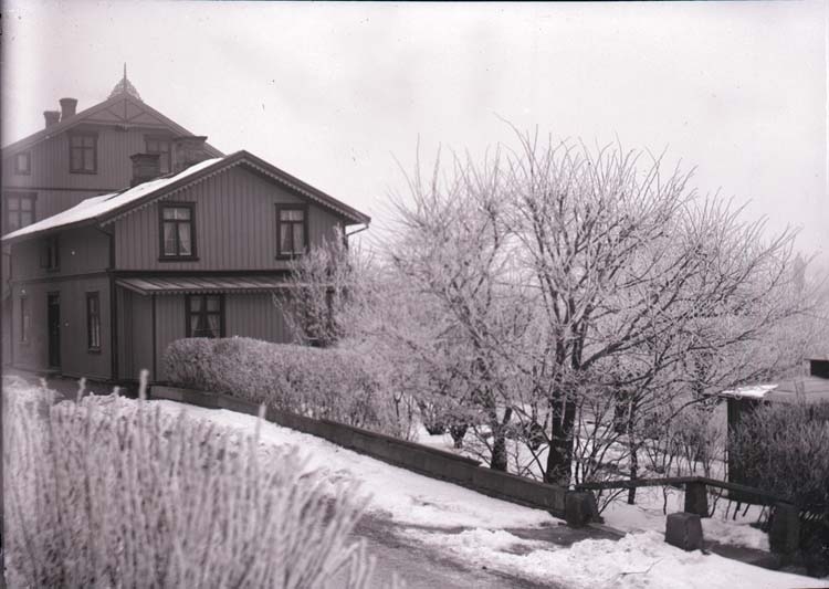 Enligt text som medföljde bilden: "Lysekil, Vårt hus o. trädgård i rimfrost 23/2 1902."