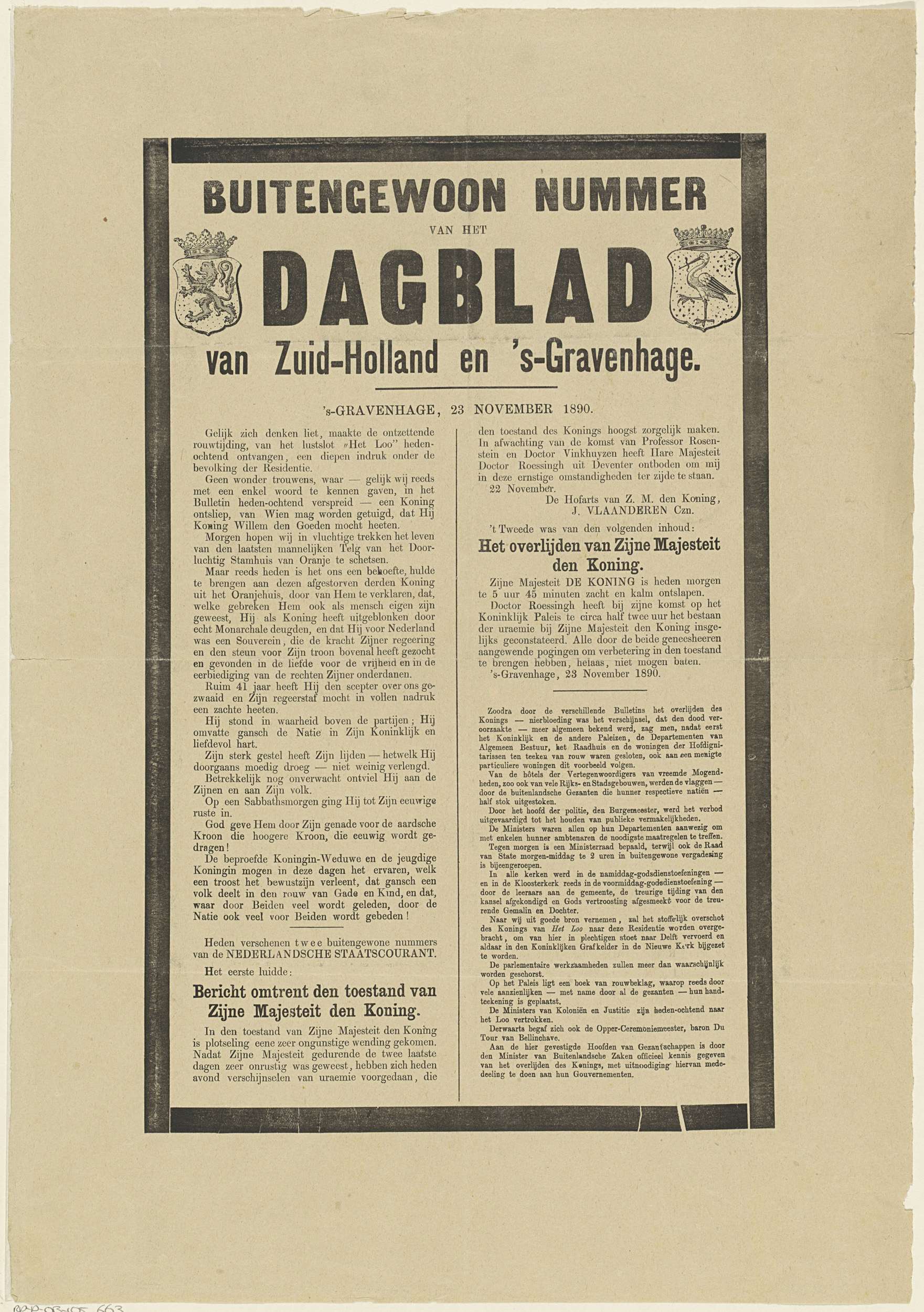 Buitengewoon nummer over het overlijden van Willem III, koning der Nederlanden, op 23 november 1890