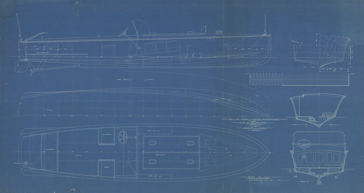26 ft Yawl. Scale: 1:24. Plan showing the body plan, sheer lines with inboard detail, and longitudinal half-breadth for a 10-oared 26 ft Yawl to be built at Portsmouth Dockyard. This may be an 1823 copy of the 1811 plan that was sent to Portsmouth, whic