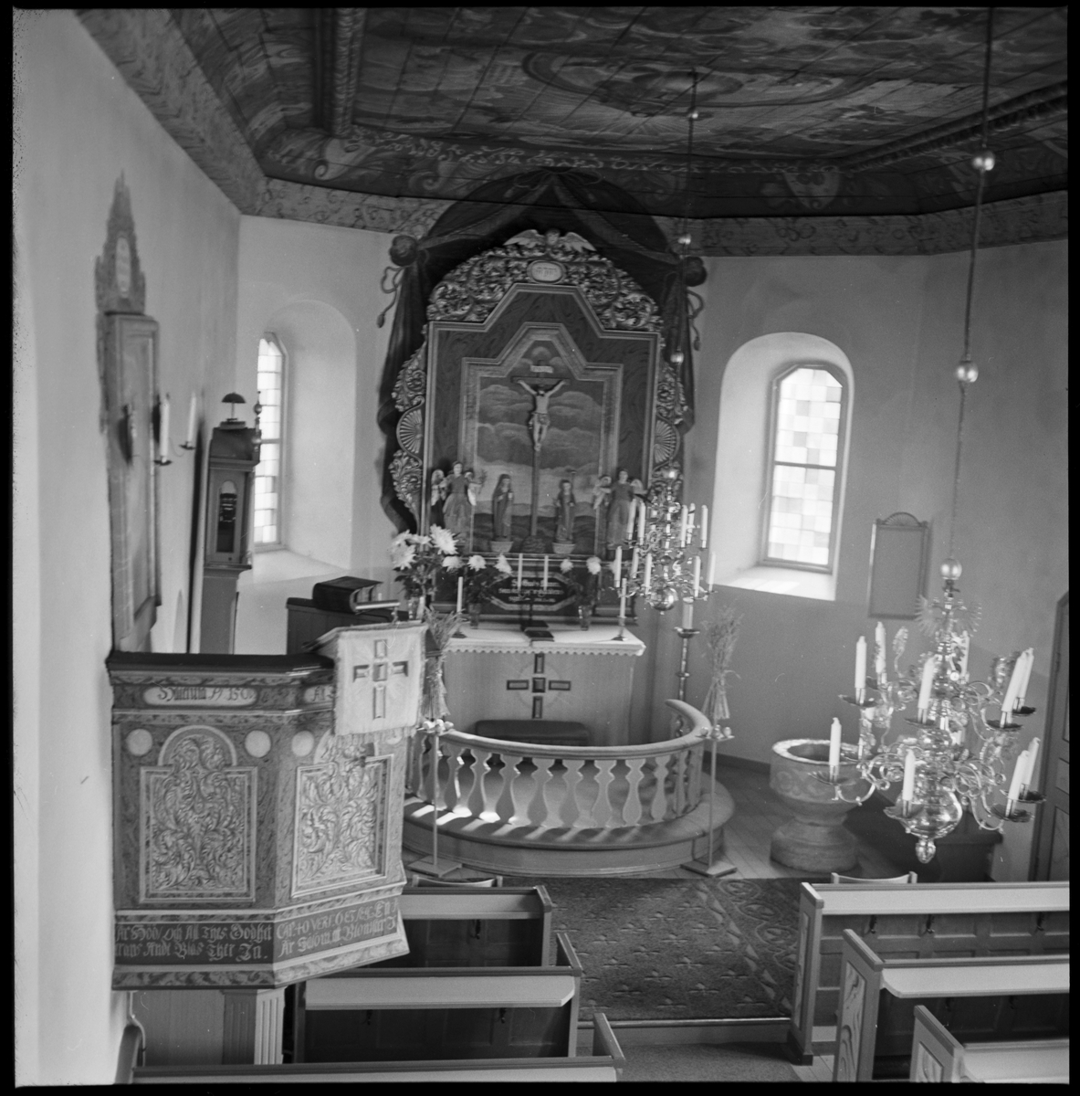 Altare med kärve och äpplen. Tradition på tacksägelsedagen. Algutstorps kyrka