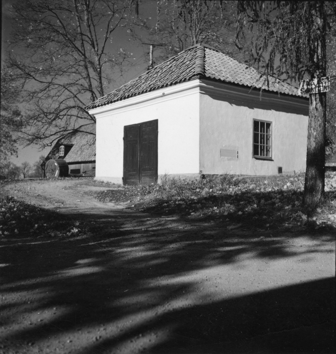 Gripsholms Kemiska fabrik. Kvarstående byggnad 1951. Fabriken för fabrikation av blyvitt. Fungerade 1951 som fruktkällare.