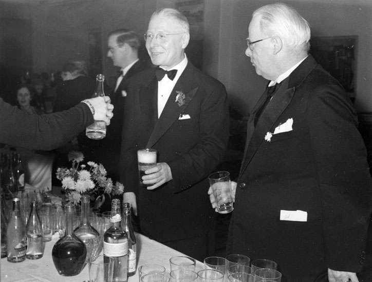 Sjösättningsmiddag för fartyg 126 M/T Aslaug Torm. Helge Hagelin till höger.