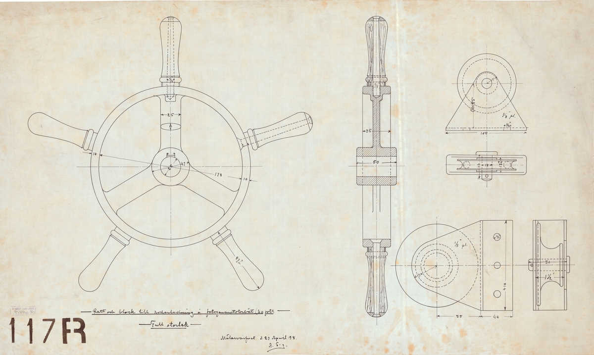 Capstans on the beach at Brighton with a snatch block; nets and clothes drying, Apr 27 1830. Mounted with PAE5438, PAE5440.