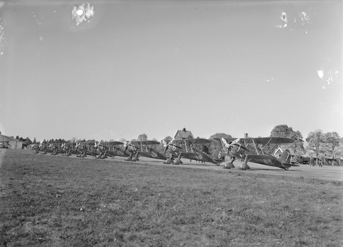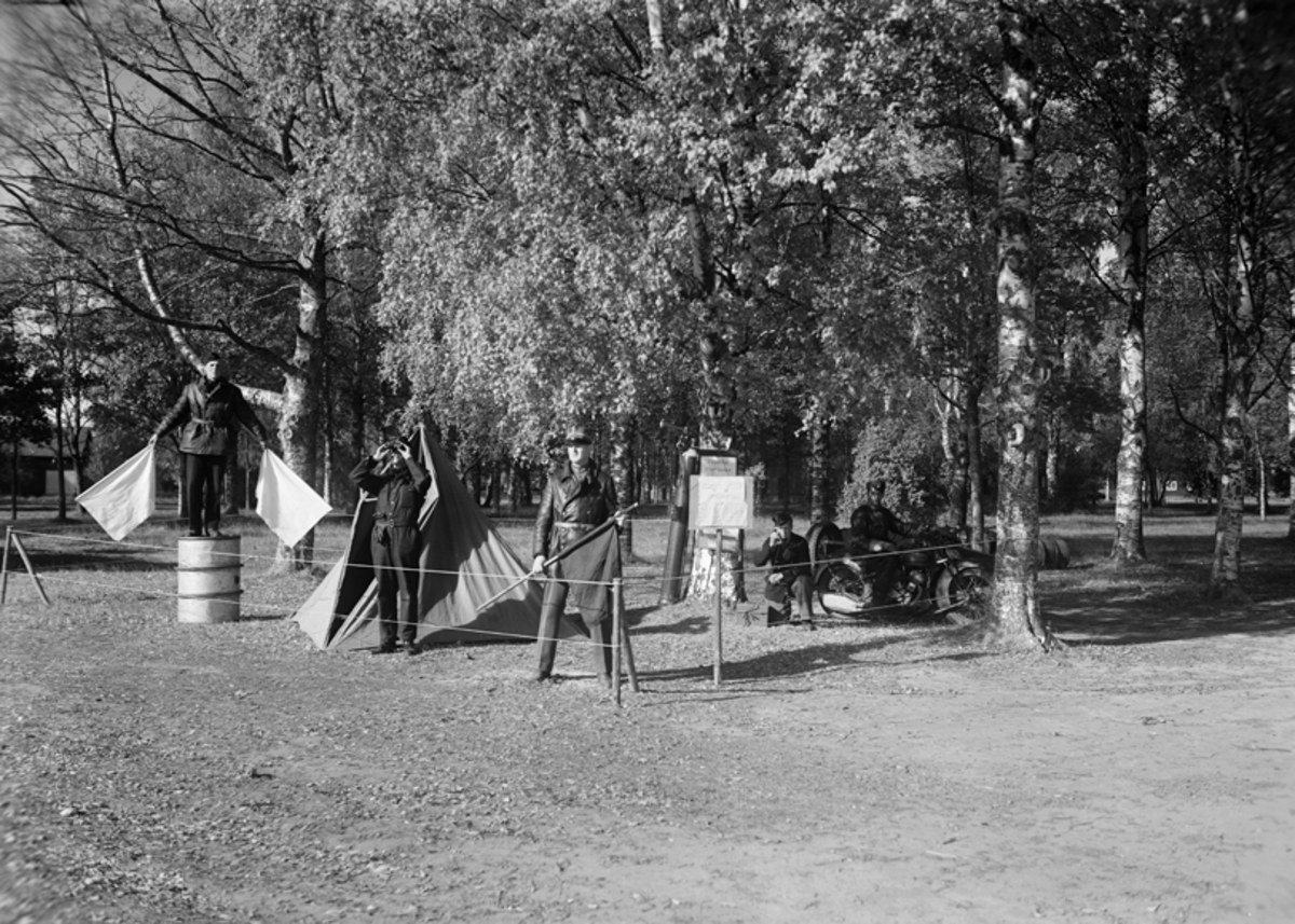 Flygledarplats under övning i Rommehed, 1936. Avskärmat område för signalering till övande flygplan.