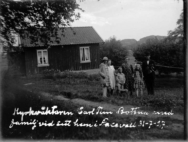 Skrivet på bilden: "Kyrkovaktmästaren Carl Tim, Bottna med familj vid sitt hem i Saxevall 31717."